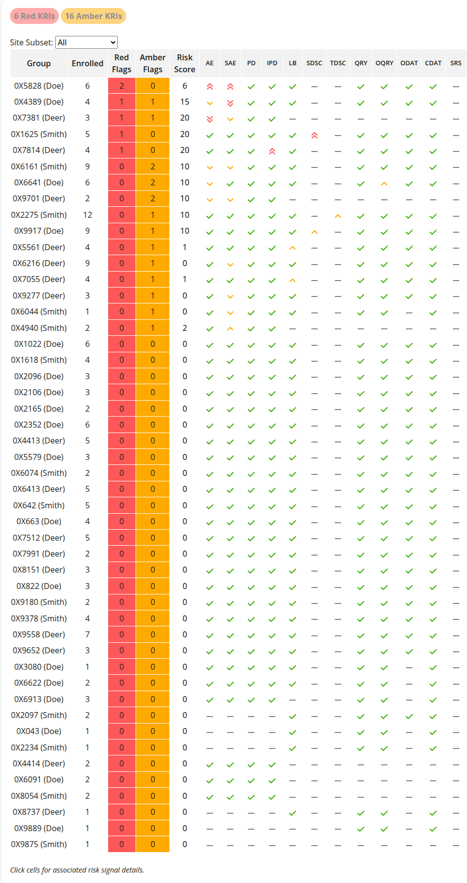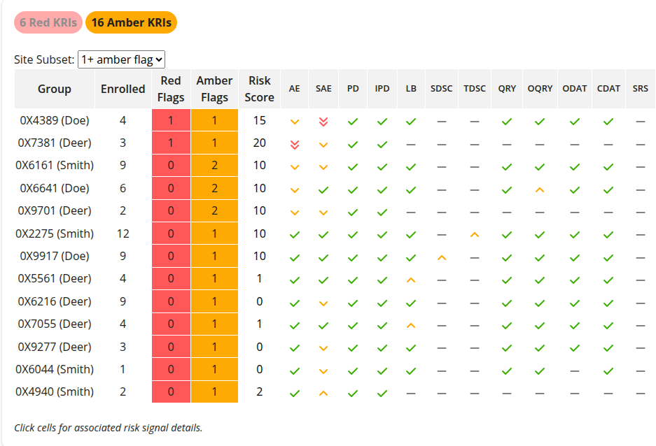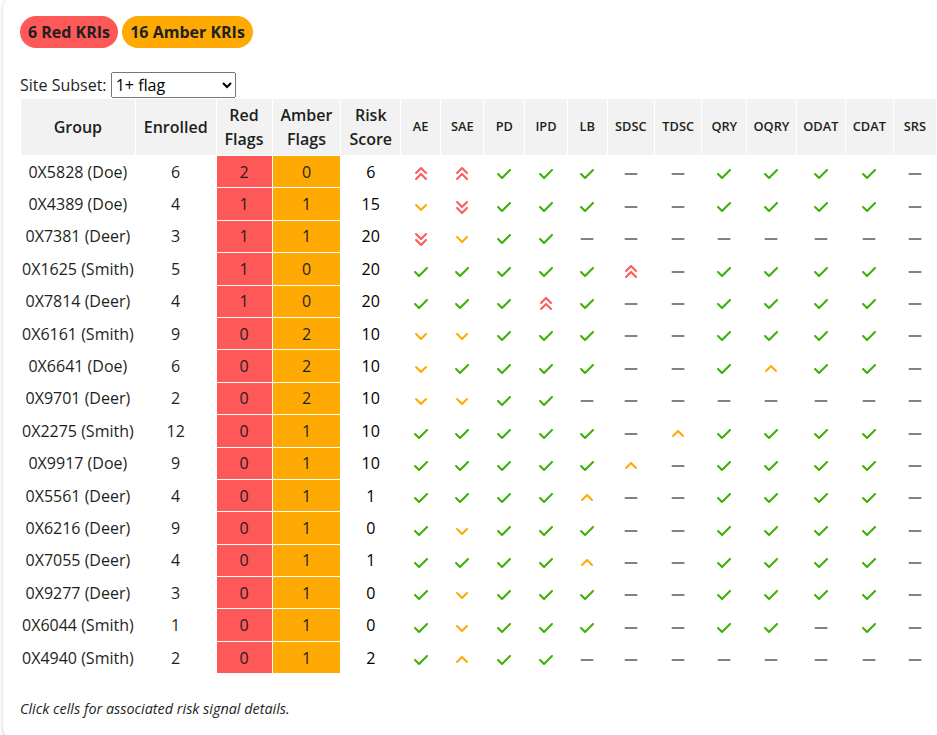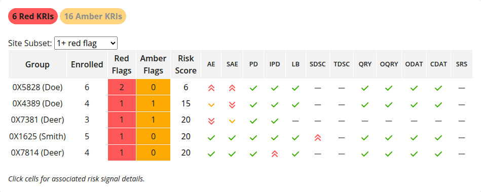 The flag status pills display a count of KRIs with that flag status for the selected “Group Level”.