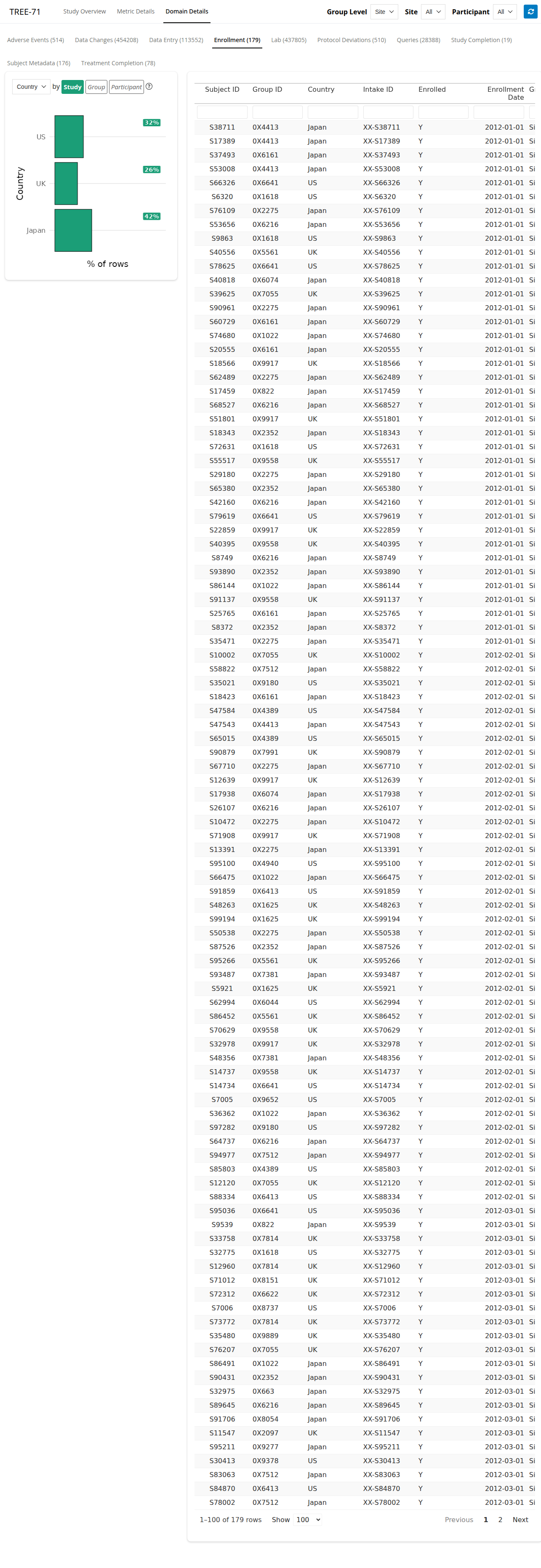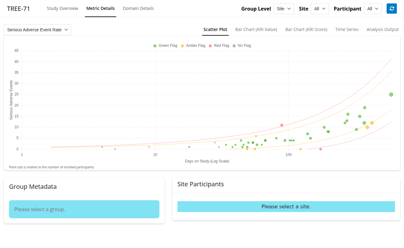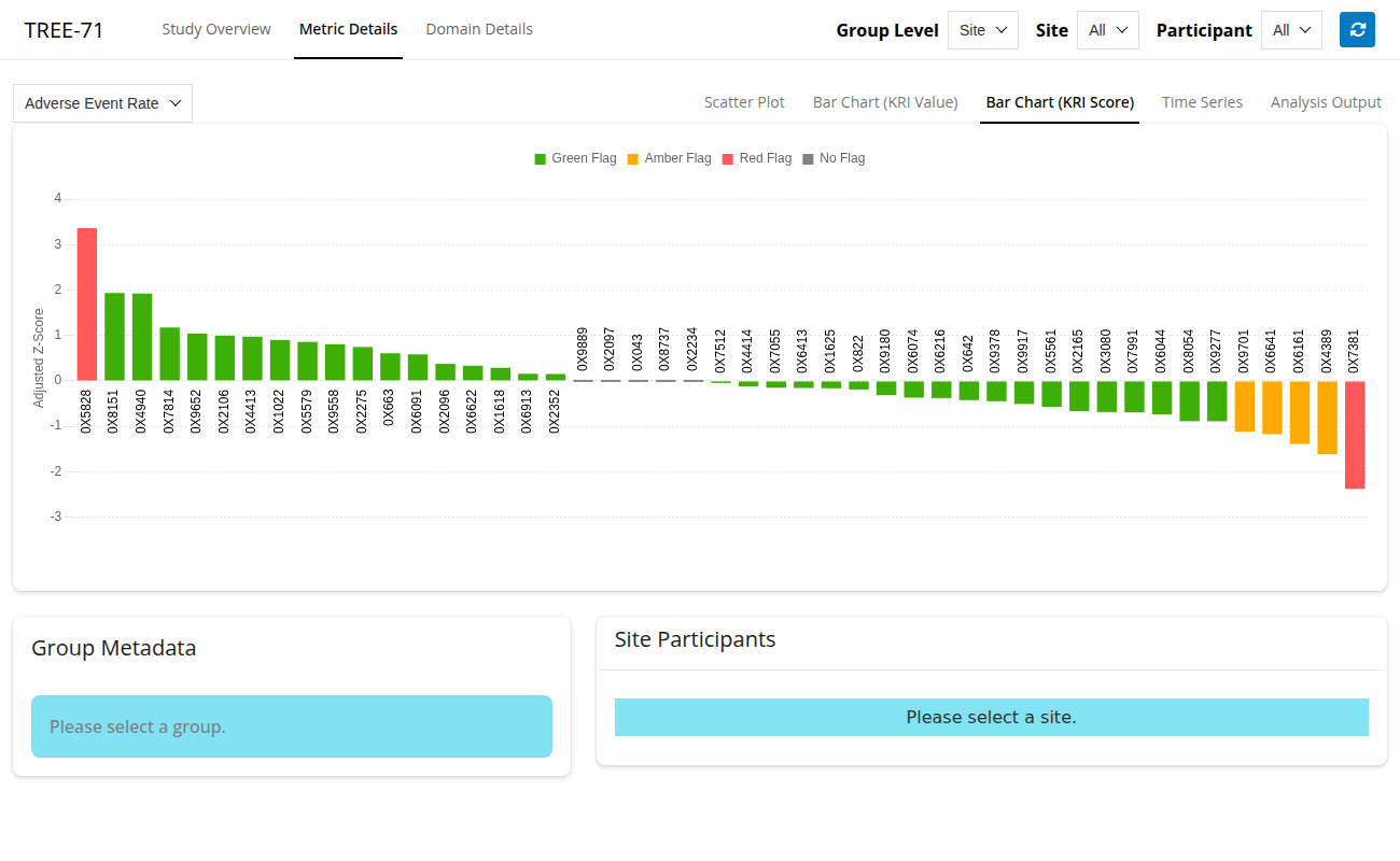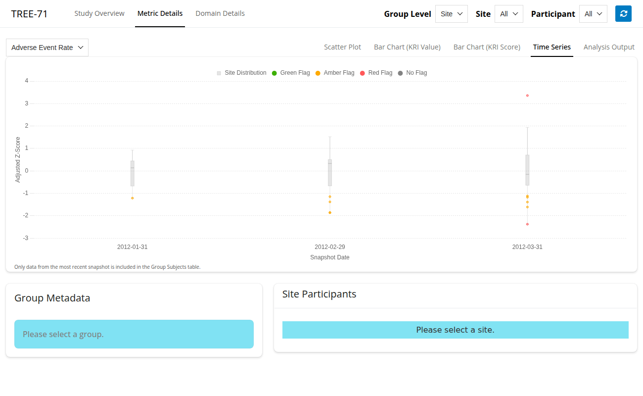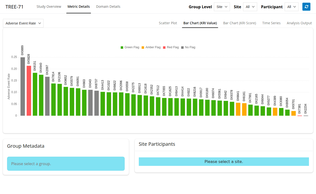 If the data contains more than one group level (e.g., “Site” vs “Country”), a “Group Level” filter is displayed.