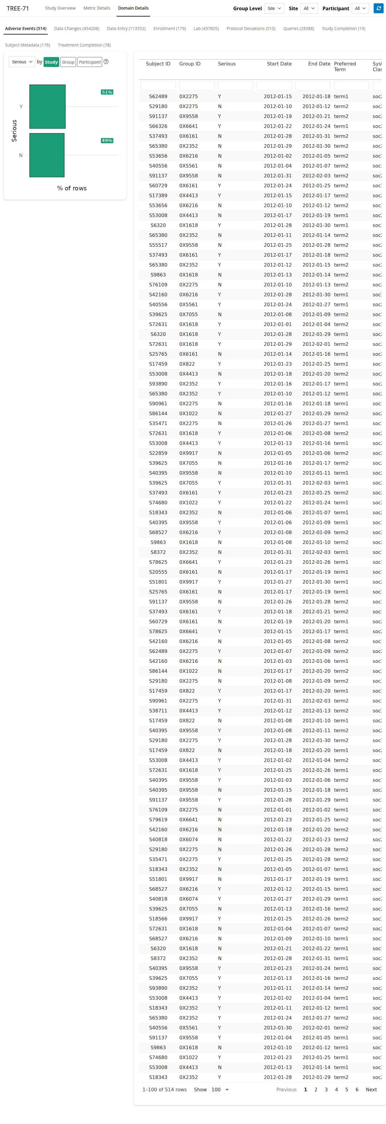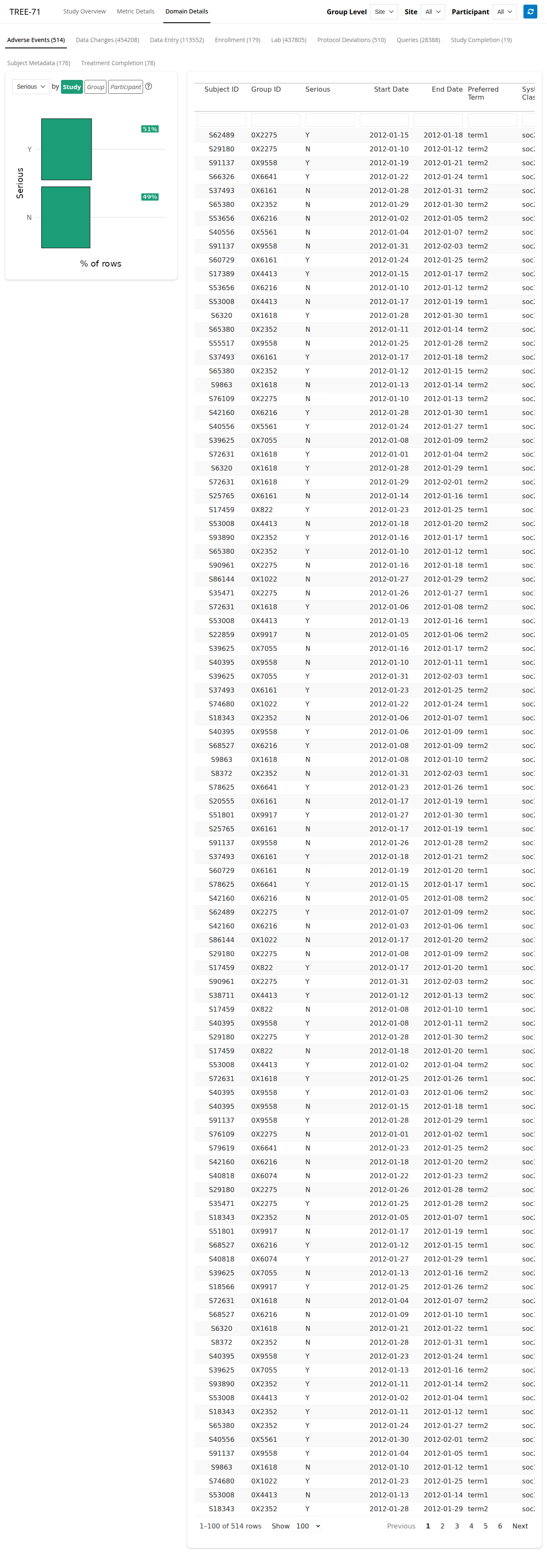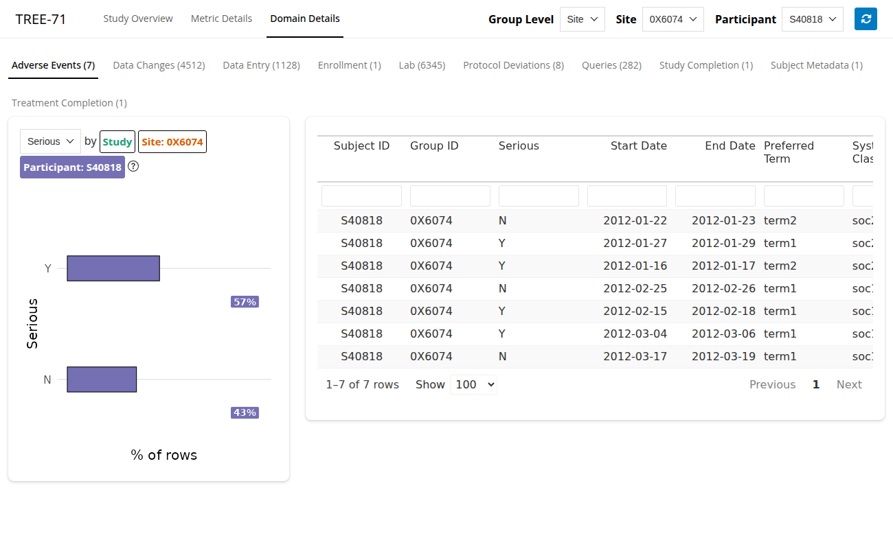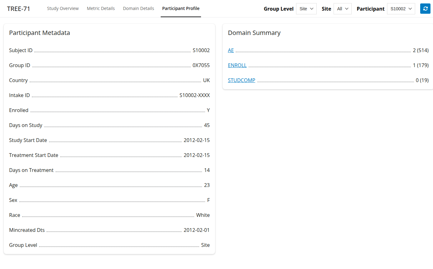 The domain data table is filtered by the selected “Group” and “Participant”.