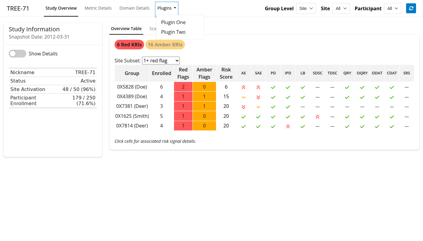 Generate a shiny app that presents the input and output of {gsm.kri} in a way that allows clinical monitors (etc) to dive deeper and identify the sources of issues.